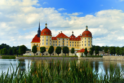 Открыточный вид замка Морицбург Охотничий дворец Морицбург. Саксония. От центра Дрездена минут 20 езды. Замок на искусственном острове. Руско-язычные экскурсии туда редкость, электронного гида на русском нет пока. Именно в Морицбурге находятся крупнейшие оленьи рога в мире; весят они 19.8 килограммов, а размах их составляет почти 2 метра. Рогов там немыслимое количесто.. Если рассматривать с точки зрения "Золотого часа" то заход солнца приходится как раз на главный вход в замок. |