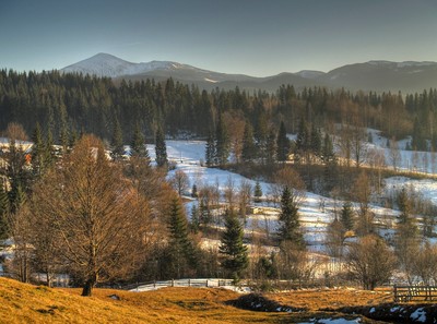 Вид в направлении г. Говерла с окрестностей села Лазещина (Закарпатье). Ноябрь 2016 г.
