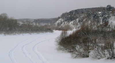 Вид с моста на реку Томь и гору, а между ними автотрасса