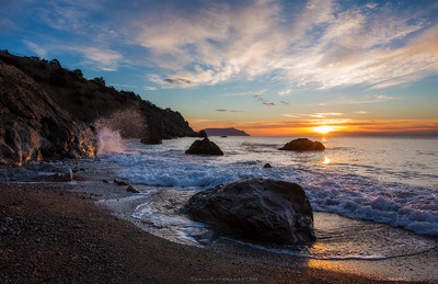Последняя неделя уходящего года. Рассвет на пляже в близи поселка Новый Свет с видом на мыс Меганом.