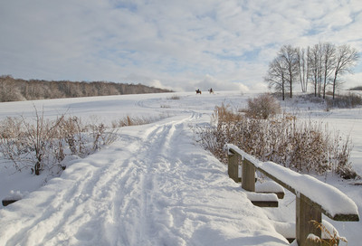 Узнаю Ясную поляну, Долго же наверное добираться до этого мостика пришлось по такому снегу то!!! Отлично со всадниками получилось!