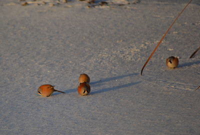 Это усатые синицы. Три самца, а четвёртая закрыта...