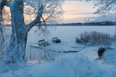 Озеро Святое, Шатурская ГРЭС и оригинальные плоты местных рыбаков на зимней стоянке.
