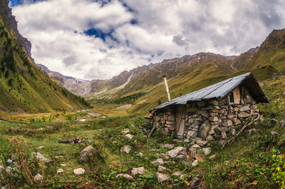 Мимо избушки пастуха ... Ущелье реки Терскол, снято по пути на одноименный водопад, берущий начало от тающих ледников у подножья Эльбруса (на заднем плане). Приэльбрусье, КБР. http://www.youtube.com/watch?v=cloWVVHfMzQ |
