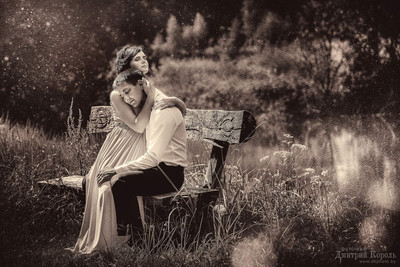 есть ощущение, что пара приклеена в фотошопе, автор старался отделить людей от фона и немного перестарался..текстуру стоит наложить и на них, и по цвету тоже они отличаются..