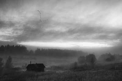 Птицы летят над Кавой у Никулной Горы в августе 2014