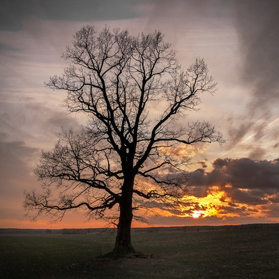 Силуэт дуба на рассвете