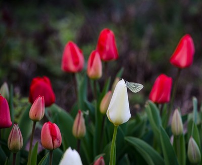 Мотылёк - эстет: выбрал тюльпан в тон своим крылышкам