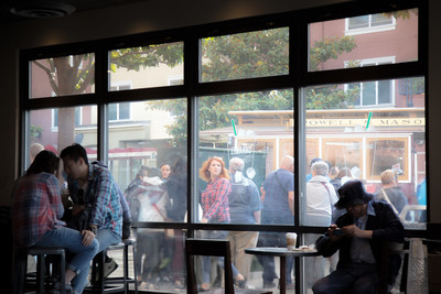 Сквозь стекло Скромная кофейня в Сан Франциско. За стеклом видна остановка уникального трамвая на канатной тяге, который бегает с 19го века. |