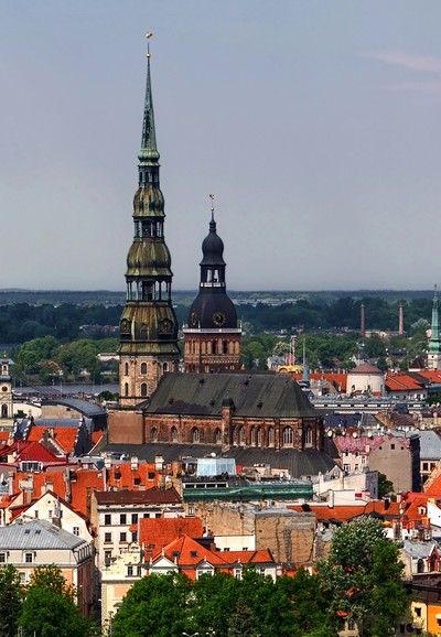 Башня церкви Святого Петра и Домского собора в Риге.