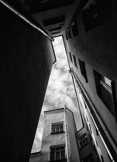 "любимый" дворик-колодец. И я в таком жил, окном в стенку. Как здорово что я теперь не там!
