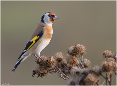 Щегол на осеннем репье