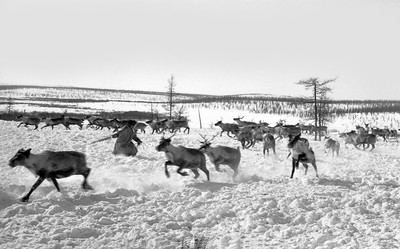 Весьма динамично...поймали два встречных движения...замах арканом-чаатом эвенка и убегающих оленей. Хороша!