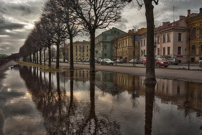 Знатная лужа на набережной лейтенанта Шмидта. СПб