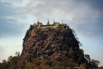 Попа анфас Гора Попа - потухший вулкан в Мьянме, видимый при хорошей погоде за 60 км. Последнее извержение было в 442 до н. э.. Расположена примерно в 60 км к юго-востоку от древнего города Баган (Паган). Гора, высота которой над уровнем моря составляет 1518 м, возвышается над окрестностями почти на 750 метров. Потухший вулкан считается одной из самых загадочных гор Мьянмы и является местом паломничества вот уже более 700 лет. |
