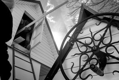 А мне видится нога человека и рычаг тоже напоминает по форме чью-то ногу. Зачем приходит человек в этот мир не знаю, главное, что мы знаем откуда - с чердака.)))