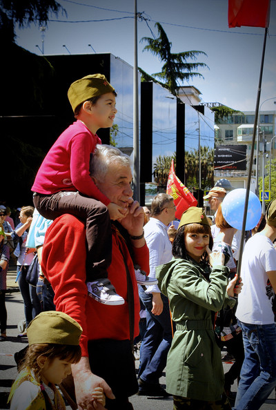 интересно, что два разных объекта одинаково "в фокусе". Мне лично дедушка нравится, а симпатичная девочка отвлекает на себя внимание. Но это и есть фишка! А как малышка внизу слева просится наверх...Что делать, в репортаже все не ухватишь.