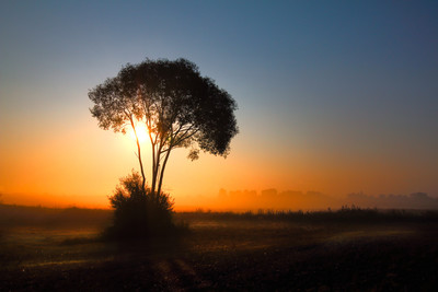 Im Sonnenaufgang eine Gegenlichtaufnahme. Ort: Mecklenburg-Vorpommern