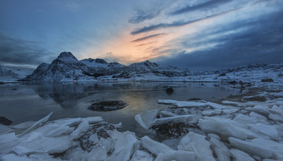 Суровая здесь красота! Теплом манят огоньки вдали... К месту в кадре и Ваш коллега, которому также не спится... Нравится фото!