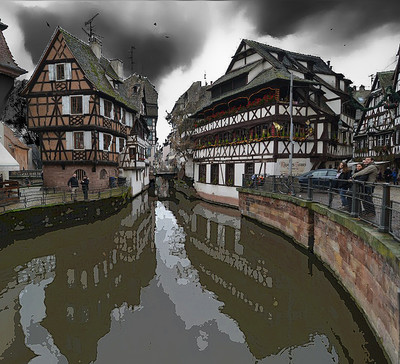 Каналы во французском-немецком городе - Страсбурге