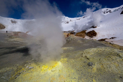 Фумарольное поле в кратере вулкана Мутновский.