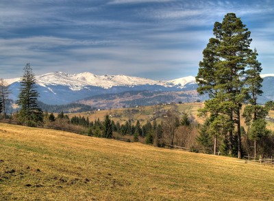 Вид в направлении на Свидовецкий хребет из окрестностей села Лазещина (Закарпатье). 31 марта 2017 г.