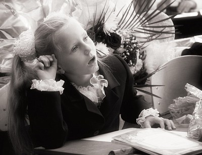 нет, она так внимательно слушала учительницу, что от забыла, что рот нужно держать открытым