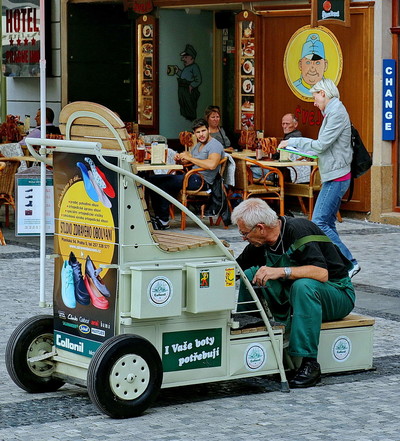 Чехия.Прага. Чистильщик обуви. В ожидании клиента.