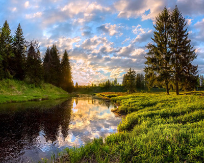 В тридевятом царстве.... Конец мая, 2017 года. Волшебное место на юге Ленобласти. Высокий берег реки и просторные луга в сочетании с величественным еловым лесом. На днях готовлю фототур именно в это место. Сейчас на лугах расцветают купальницы (золотые пионы). Плюс, нашёл две полянки ландышей с видом на реку. Подробности моих авторских фототуров «Магия Ленинградской области» здесь https://vk.com/topic-69994899_35692565 (контакт) и здесь https://www.facebook.com/groups/1755505914709044/?multi_permalinks=1877832819143019¬if_t=feed (фейсбук). |