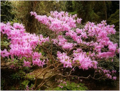 Куст рододендрона так красиво цветёт!