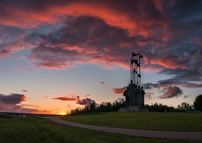 Стражи заката Величественная скульптурная композиция, посвященная почитаемому и на Псковщине, и во всей России великому князю и святому Александру Невскому, а также его дружинникам, в том числе и из Пскова, идущим на Ледовое побоище. |
