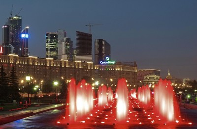 У фонтана на Поклонной горе (вид в сторону Кутузовского проспекта)