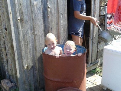купание чумазых детей Фото сделано спонтанно. в таёжной деревне. невестка моей сестры таким образом моет своих ребятишек и одновременно занимается стиркой белья , на фото виден край стиральной машинки дети счастливы , как никто на свете , сидеть в бочке в тёплой воде это необычно интересно:) |