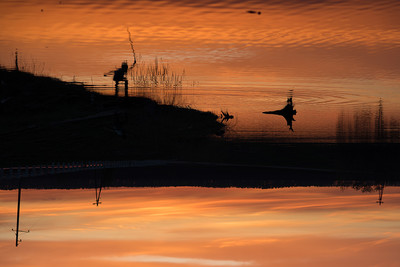 дети, озеро, закат