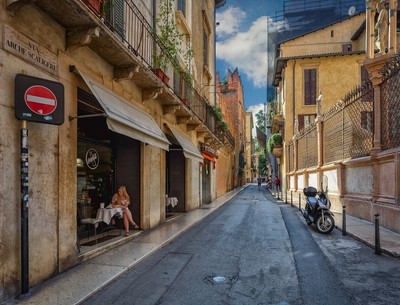 Письмо для Ромео Виднеющийся дом с готическими зубцами - особняк XIV века, в котором жил Ромео, герой знаменитой пьесы Шекспира Девушка сидит не с телефоном, а с блокнотом и ручкой и пишет или письмо, или стихи.... или роман |