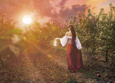 интересно, зачем ей фонарик? вроде бы светло. или это для отпугивания насекомых от сада?