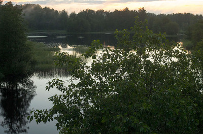 Тихий вечер после урагана. Даже небольшой туман поднимается над рекой.