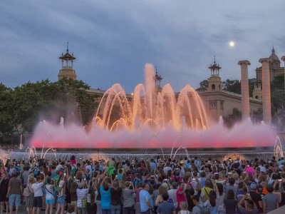 Магический фонтан Монжуика Волшебный фонта́н Монжуика (исп. Fuente mágica de Montjuic, кат. Font màgica de Montjuïc) — фонтан, расположенный на холме Монжуик в Барселоне (Испания). Волшебный фонтан был построен ко Всемирной выставке 1929 года в Барселоне в футуристическом стиле в форме эллипса по проекту местного инженера Карлоса Буигаса. Вплоть до 1992 года сооружение обходилось без реконструкции и радовало горожан и гостей столицы Каталонии разве что подсветкой. Но перед Олимпиадой-1992 фонтаны решено было сделать одним из символов города, добавив музыкальное сопровождение. Более 3000 рабочих воплотили грандиозный проект в жизнь всего за год. К чаше от двух башен на Площади Испании тянутся каскады фонтанов с подсветкой. Со всех сторон площади возле водной феерии звучат изящные музыкальные мотивы, под которые 3620 струй исполняют свой завораживающий танец. В год фонтан Монжуик посещает порядка 2,5 млн человек. |