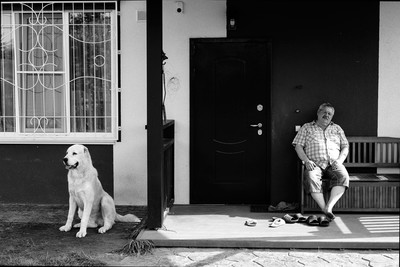 Хороший мальчик-ласковый к своим и ужас для чужих-гукает так что кирпичей отложить не сложно..но большей частью молчит-смотрит в глаза и молчит. Жене подхалим делает китайца-жмурит глаза и рот растягивает..знает как женщинам понравиться.
