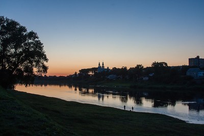Вечер, река, рыбаки, спокойствие и умиротворённость.