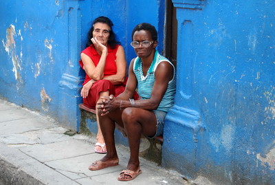 Наверное мать со своим сыном. Хорошо запечетлены эмоции: то ли грусть от безысходности, а может воспоминания о "хороших днях"