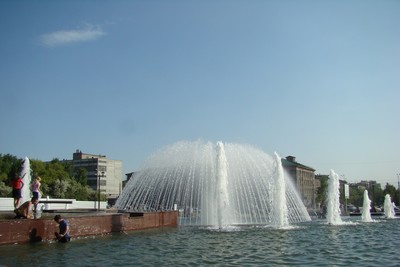 Каскад фонтанов "бассейн реки Обь" построен в 21 веке в Новосибирске на площади Пименова перед ГПНТБ.