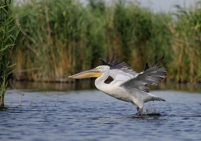кудрявый пеликан на взлете