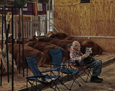 Классный сюжет!! У хозяина в руках даже рекламный журнальчик про этих самых коров!!!)Все такие дисциплинированные ...))