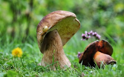 Гриб-мужик лежит у ног(и) своей возлюбленной, которая красуется с поднятой шляпкой!