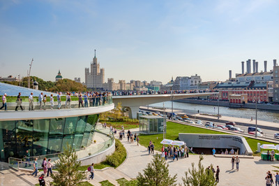 «ПАРЯЩИЙ» МОСТ «Парящий» мост стал новой смотровой площадкой столицы. С высоты птичьего полёта жители и гости столицы смогут увидеть ансамбль Кремля, центральные набережные и Китай-город. Ажурная конструкция соединяет Москворецкую набережную с парком. Длина моста – 250 метров, ширина – 60 метров, высота над гладью воды - 13 метров. |