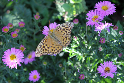 Бабочка на осенних цветах .