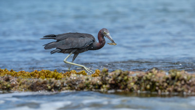Little Blue Heron Малая голубая цапля может иметь разную окраску в зависимости от возраста: молодые особи полностью белые с ярко-зеленоватыми ногами, когда взрослеют, то постепенно покрываются темно-синими перьями и в конце становятся полностью темно-синими, но только c фиолетовой шеей и светлыми ногами. |
