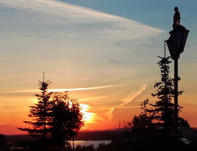 Мне еще показалось интересным, что верхние части фонарей образовали человеческую фигурку,и что-то похожее на факел появилось в его руке, и это без фотошопа. Магия заката. |