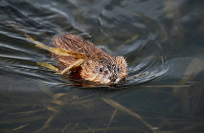 Ондатру заинтересовал блеск стекла объектива и она приплыла....